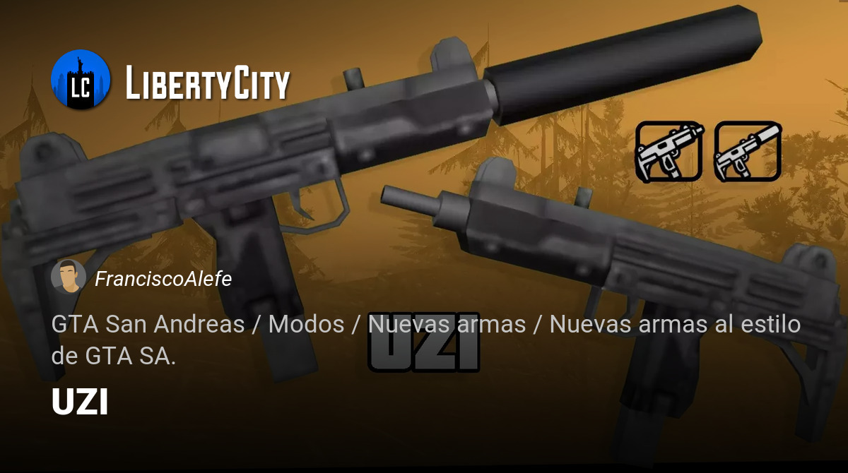 Modelo Uzi de calidad media para GTA SA Características - Modelo hecho desde cero - Se adapta bien a las manos - Encaja en la atmósfera del juego - Hay un icono en el estilo del original