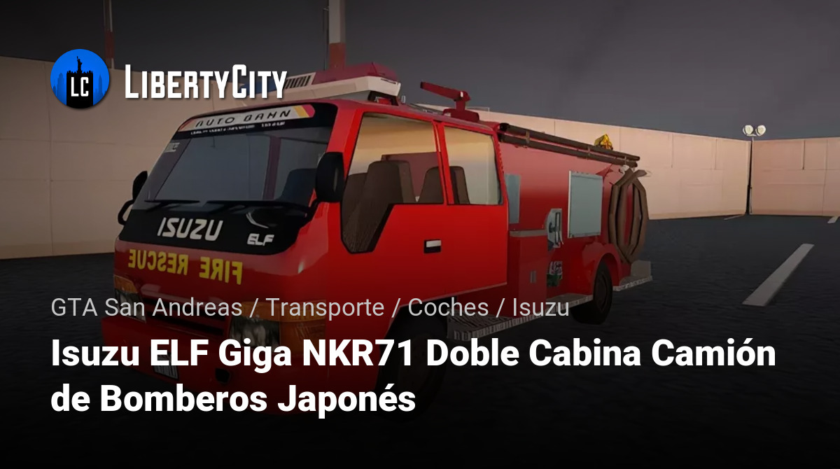 El Isuzu ELF Giga NKR71 Doble Cabina Camión de Bomberos Japonés es un vehículo de emergencia con doble cabina, construido sobre la base de un camión ligero Isuzu ELF. Es utilizado por los servicios de bomberos para respuestas rápidas, transporte de personal y equipo al lugar del incidente.