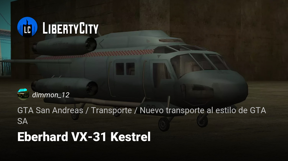 Hola. Este invitado, al igual que el Tetrao, proviene de una línea de tiempo cibernética similar a GTA. Este es un prototipo, una etapa de transición entre helicópteros y vehículos aerodinámicos (aerodyne / AV/ vehículo aéreo), el VX-31 Kestrel.