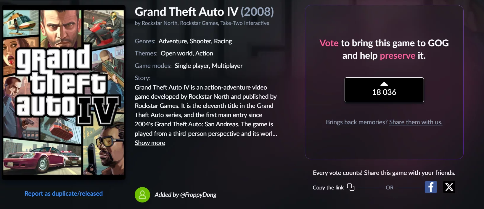 Los jugadores quieren GTA 4 en GOG — 18,000 votos y contando
